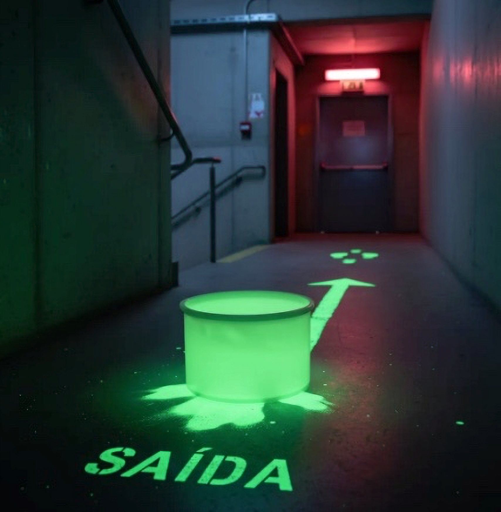 Sistema fotoluminescente Corion LED Cell composto por uma embalagens de 900ml, acompanhado de primer e verniz, desenvolvido para aplicações industriais e projetos de grande escala que exigem alta visibilidade, padronização e desempenho contínuo.