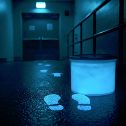 Sistema fotoluminescente Corion LED Cell composto por 2 cores em embalagens de 900ml, acompanhado de primer e verniz, desenvolvido para aplicações industriais e projetos de grande escala que exigem alta visibilidade, padronização e desempenho contínuo.